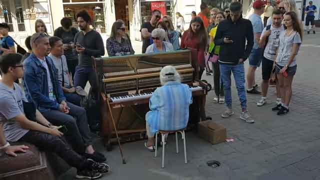 Elderly street artist shocks passersby with musical talent