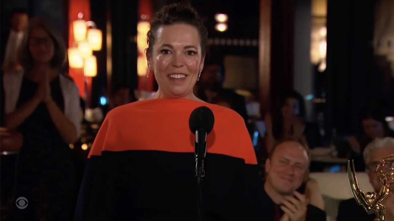Olivia Colman tears up during her acceptance speech as The Crown sweeps the Emmys