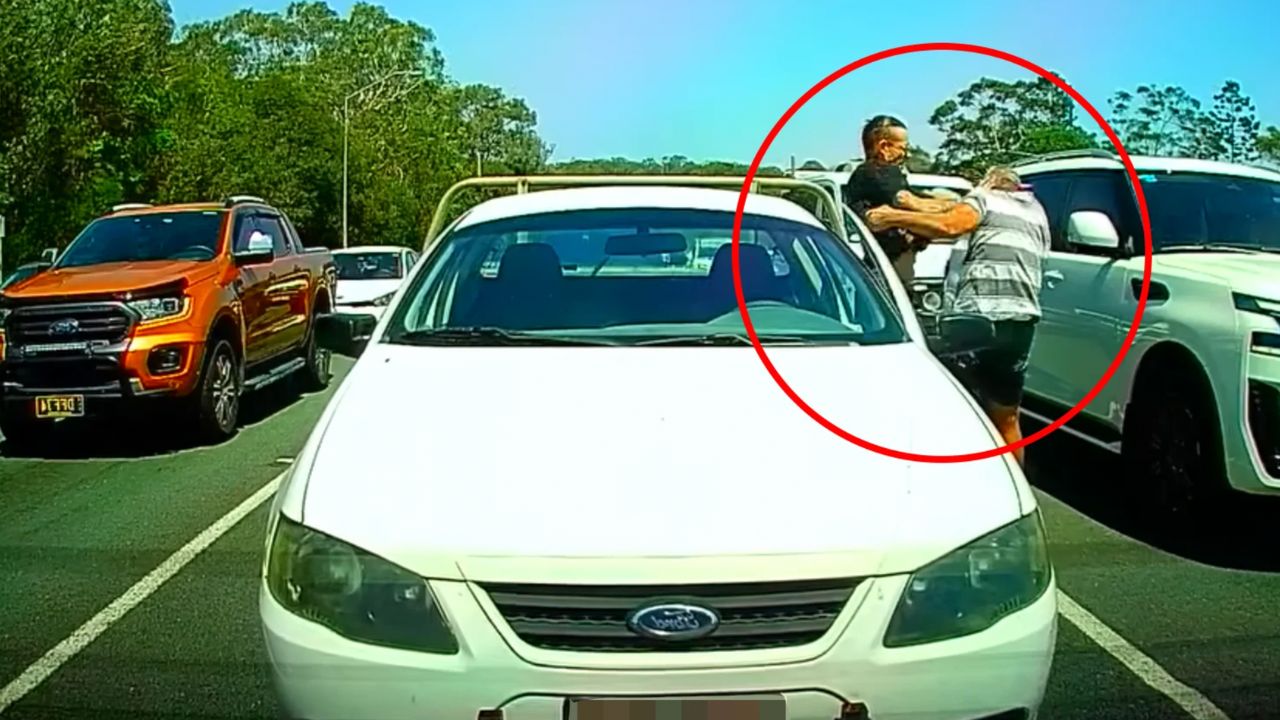 Dashcam footage captures wild brawl on busy Queensland road