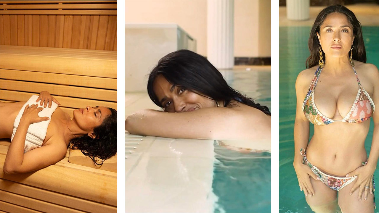 Salma Hayek shows off incredibly risque aqua workout