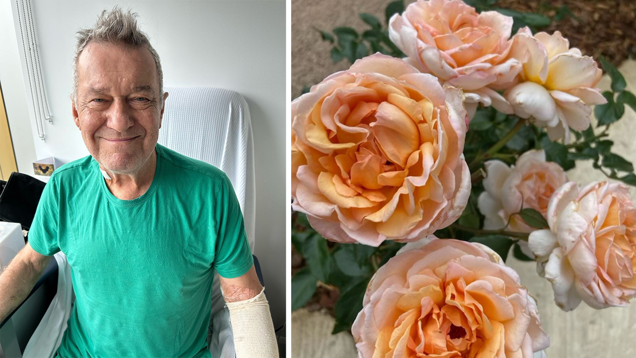 Jane Barnes has shared a delightful image of the legendary rocker sporting extreme hospital bed hair, while announcing that her husband coming home is "the best present I could ever wish for".