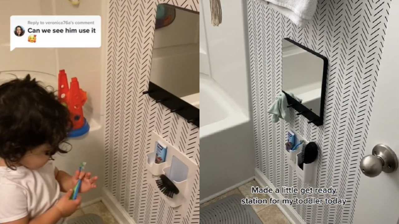 Mum builds mini-bathroom for her toddler