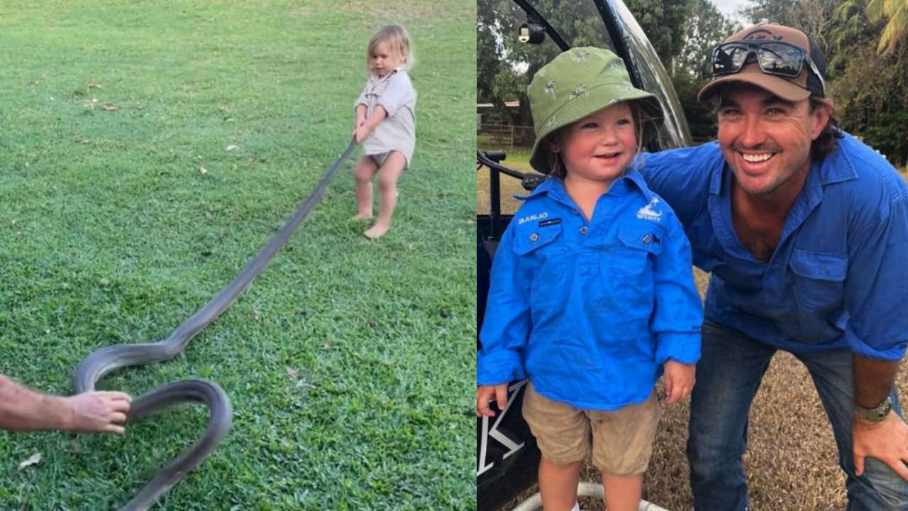 Outback wrangler helps his son tackle a two-metre python