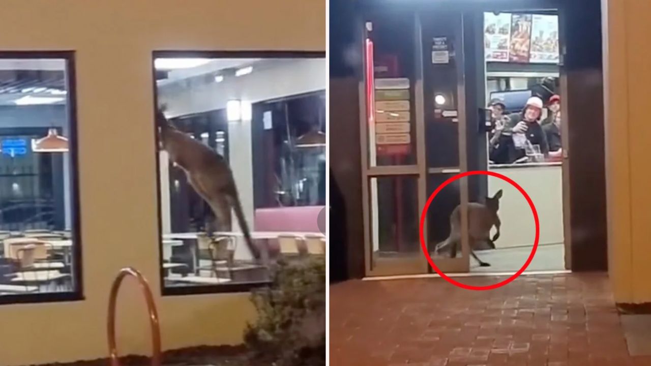"Skippy wants his zinger box": Kangaroo bounces into KFC