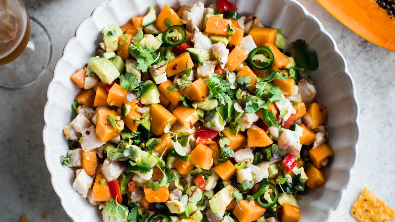 Papaya barramundi ceviche cups