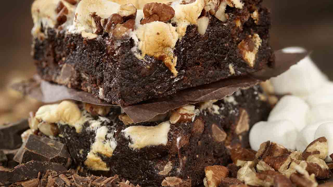 Chocolate pretzel and marshmallow slice