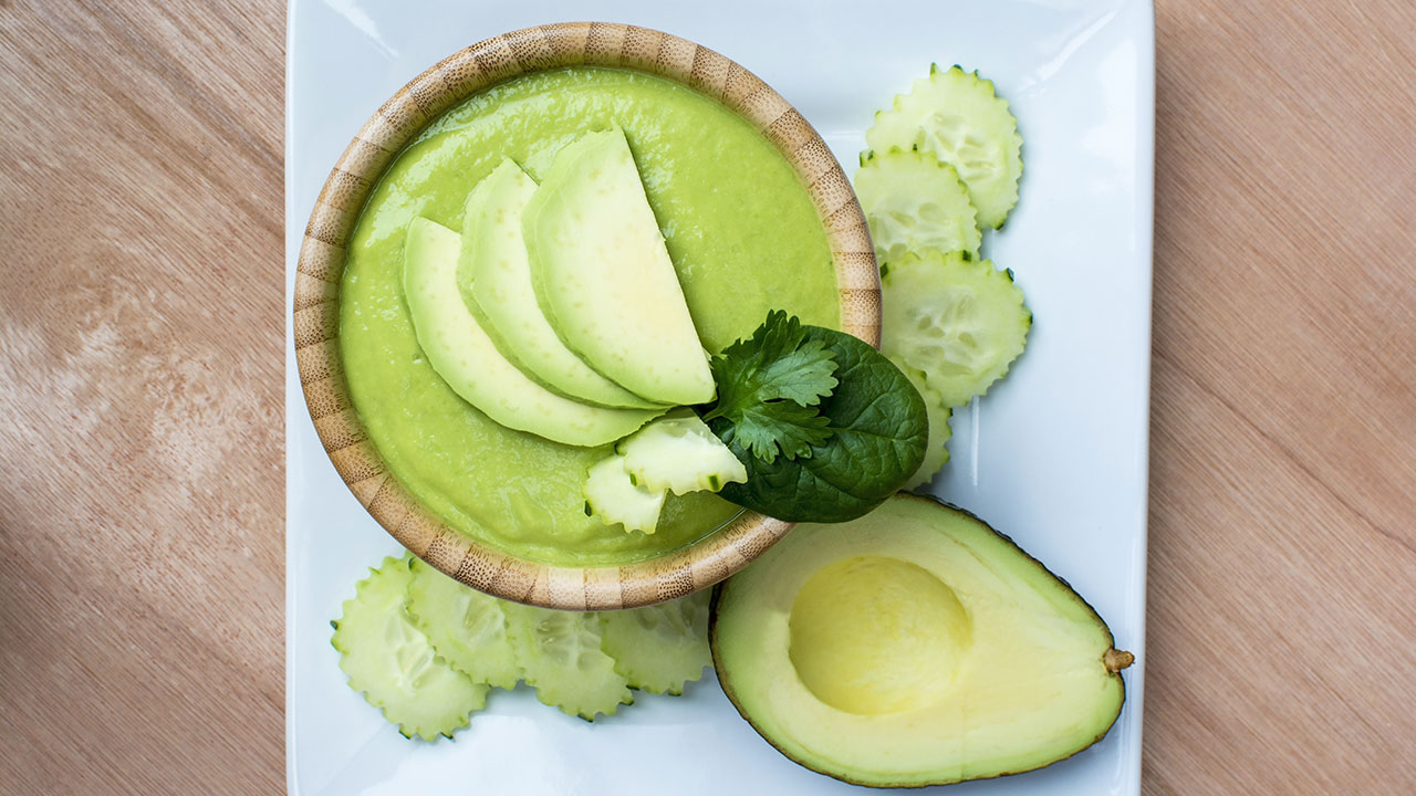 Chilled cucumber and avocado soup