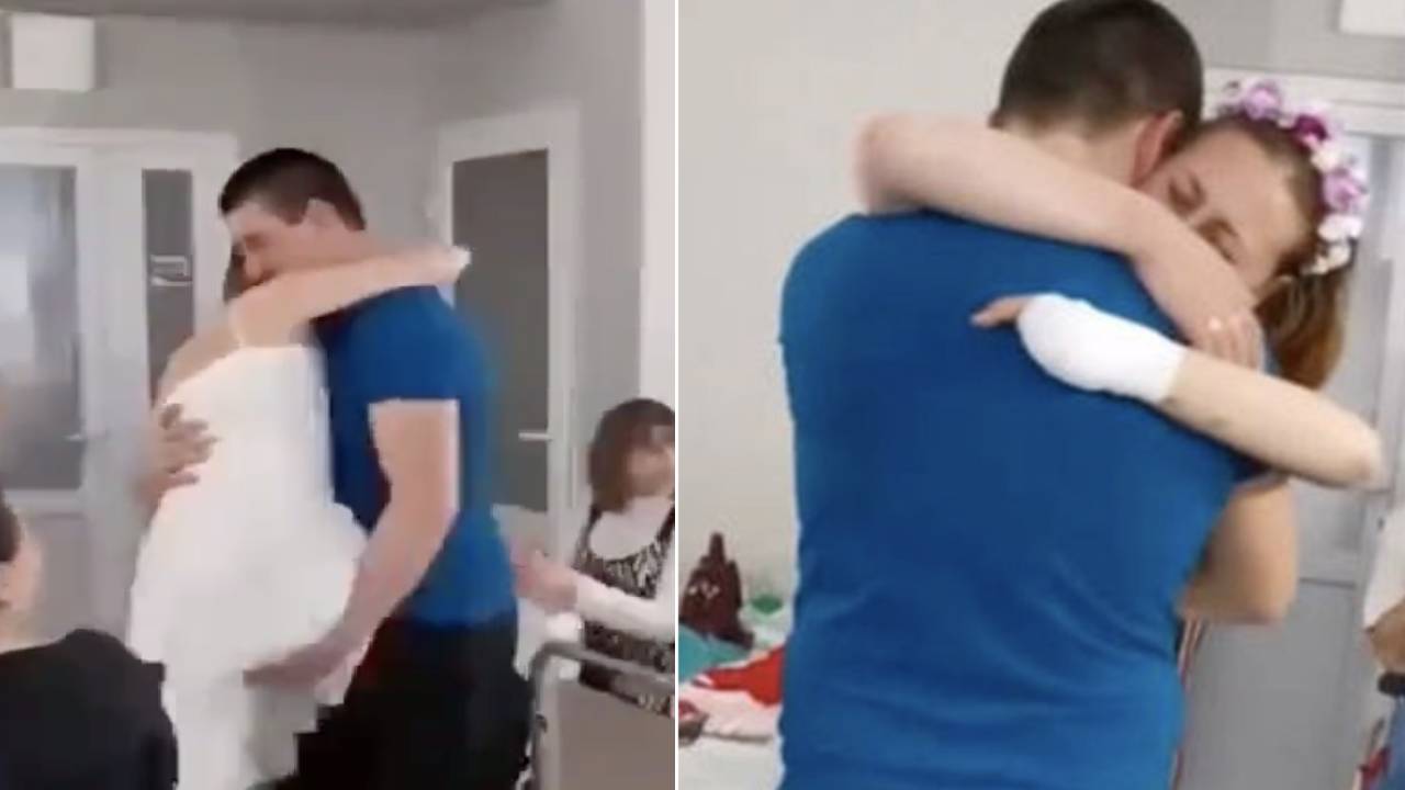 Nurse who lost both legs to Russian landmine gets married in hospital