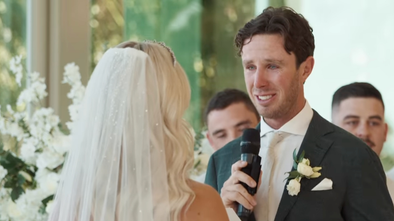 The Block stars share emotional wedding video
