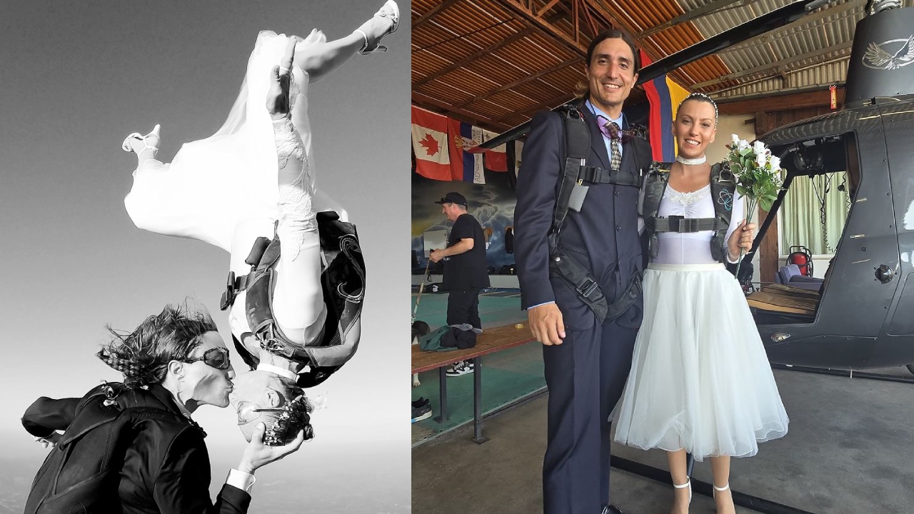 Unbelievable moment couple tie the knot while skydiving