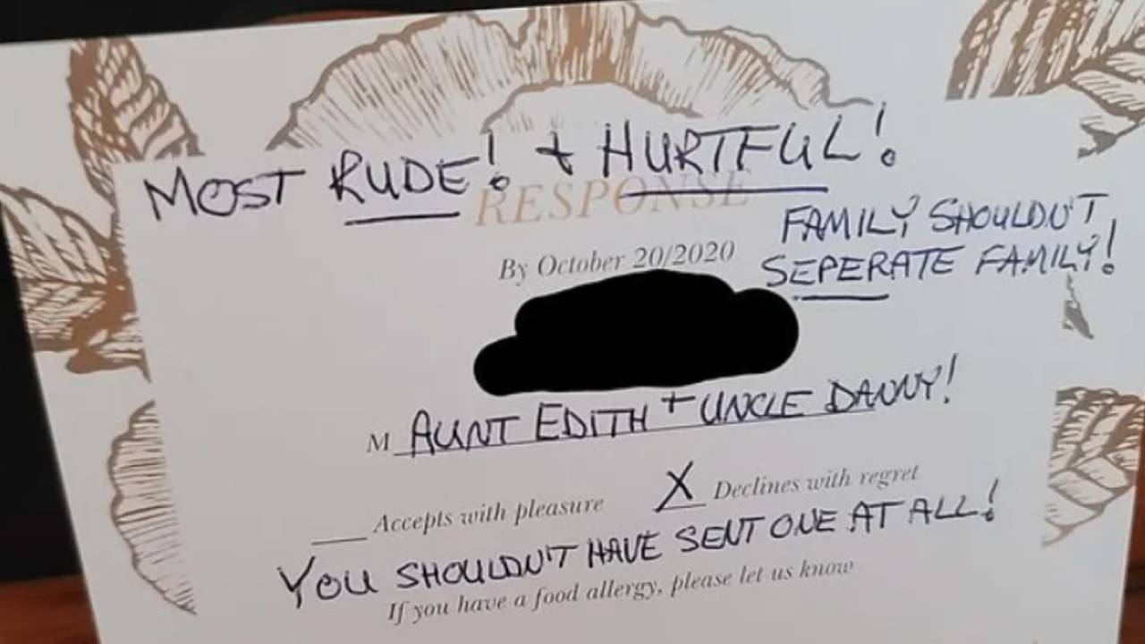 "Hurtful": Bride shares aunts furious wedding RSVP