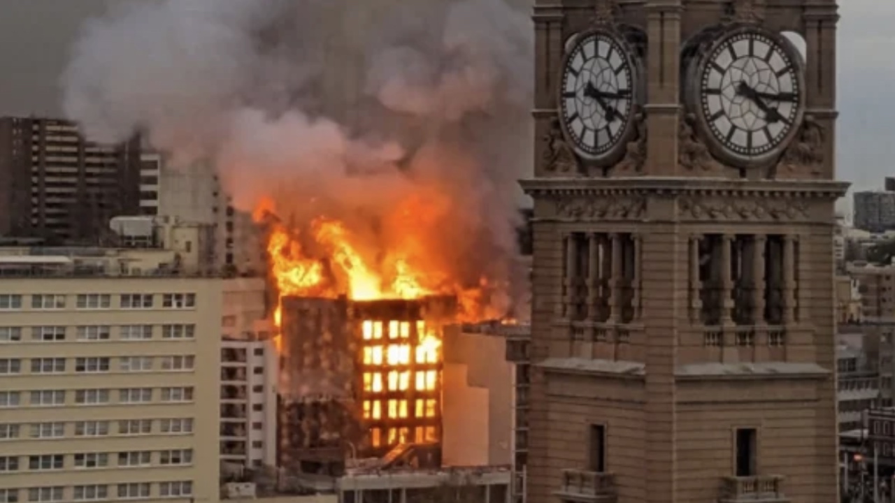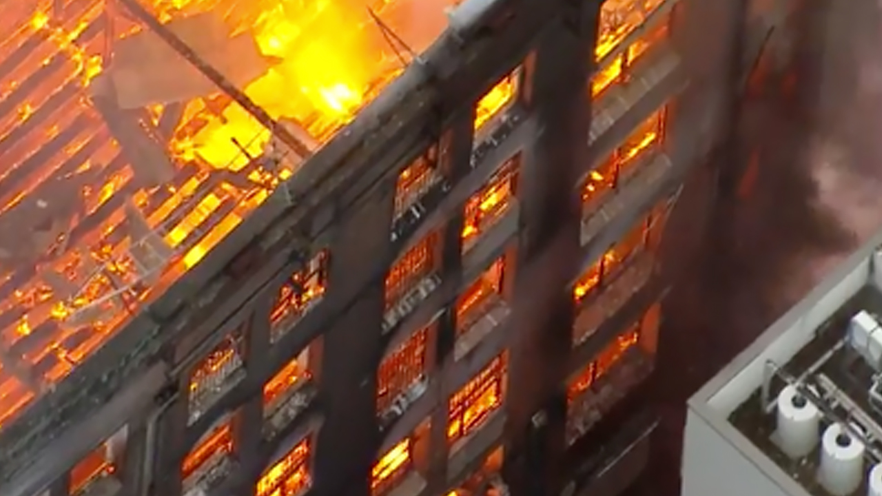 Wild moment captured as burning Sydney building collapses