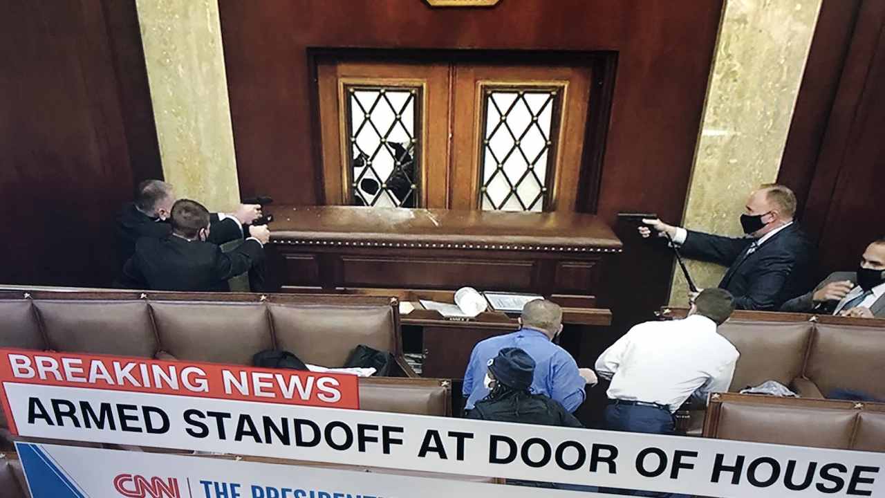 A woman is reportedly in a critical condition after being shot in the chest in Washington DC as Trump supporters storm the Capitol.