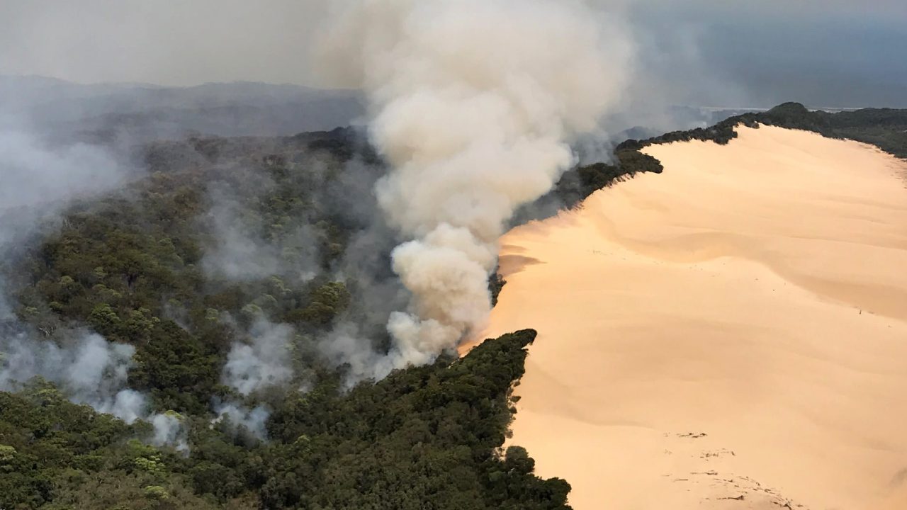 A bushfire has raged through half of Fraser Island.