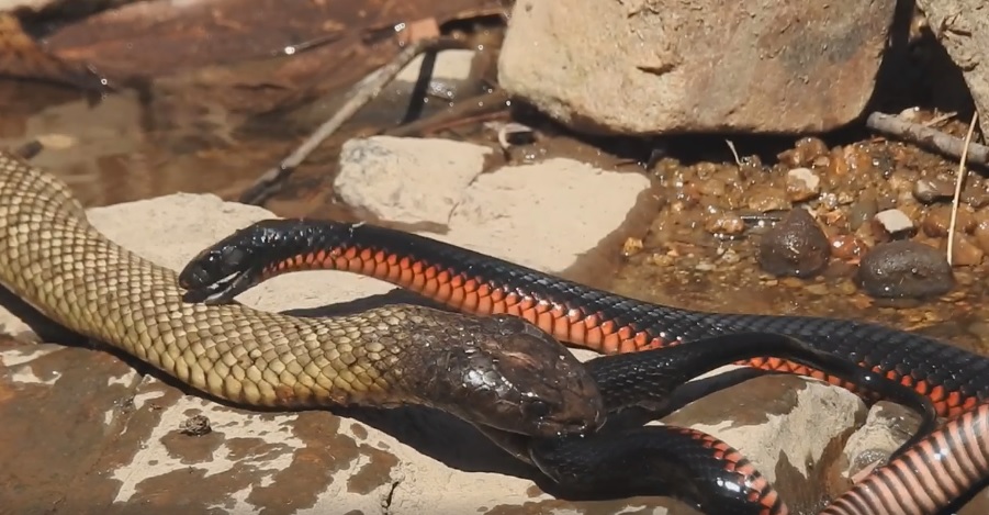 The terrifying moment two snakes battle to the death in Queensland
