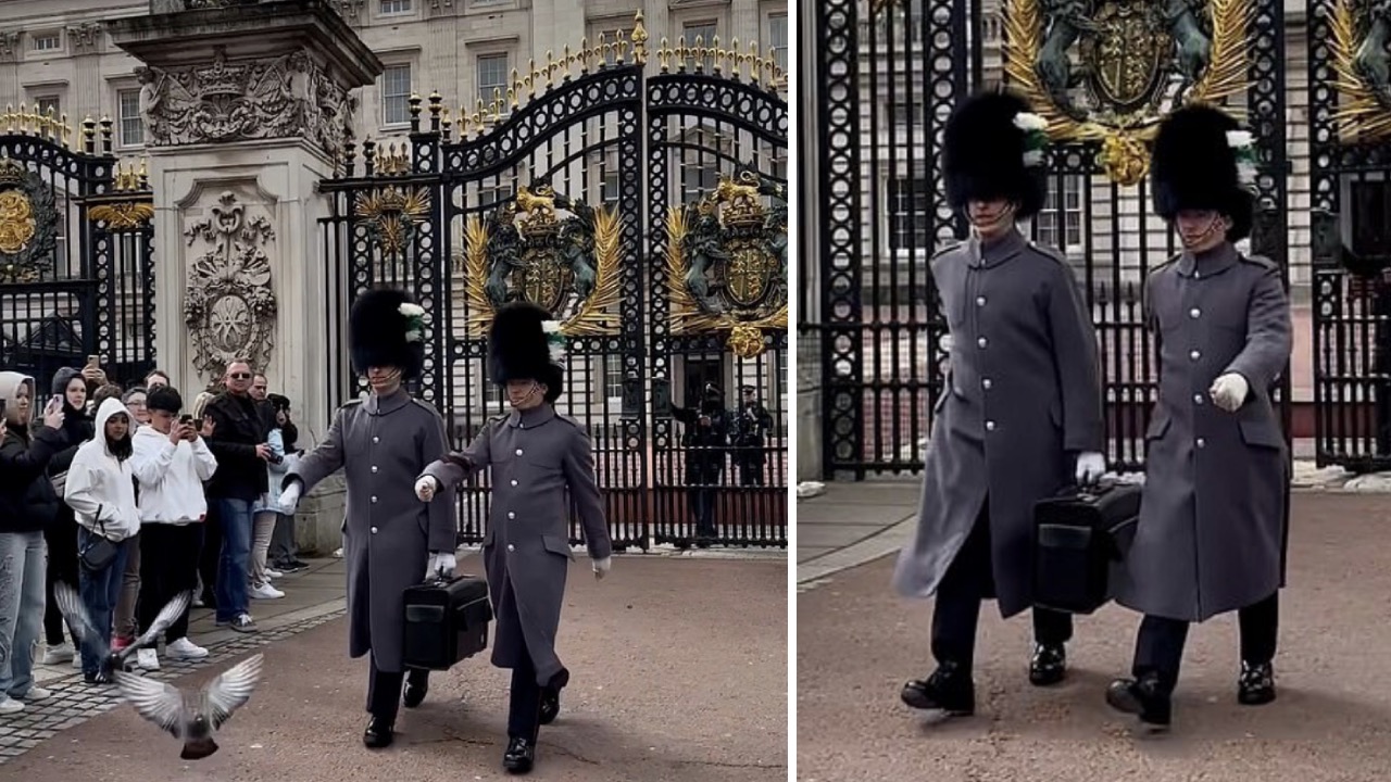 Hilarious moment King's Guard demands pigeons move from Buckingham Palace