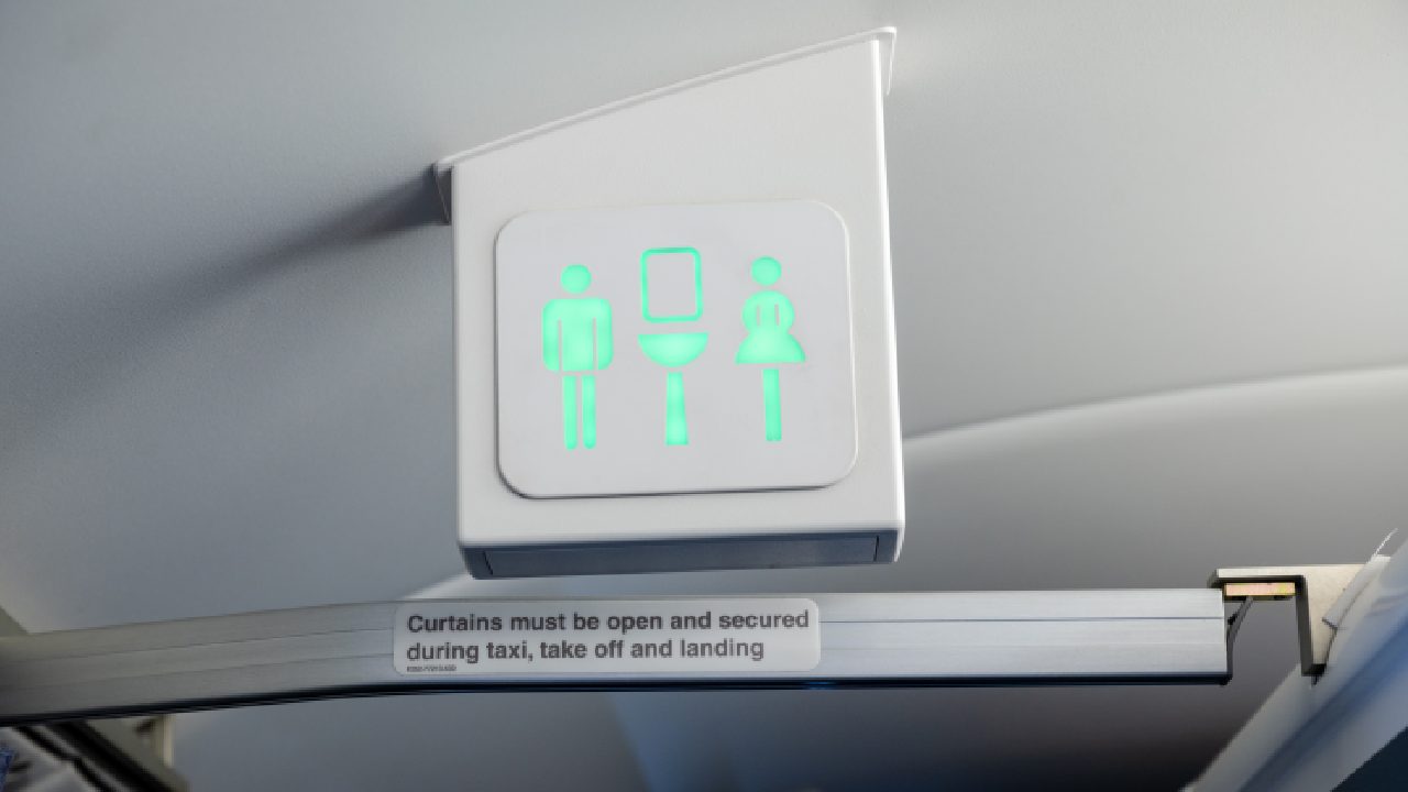 An air-craft toilet with a view