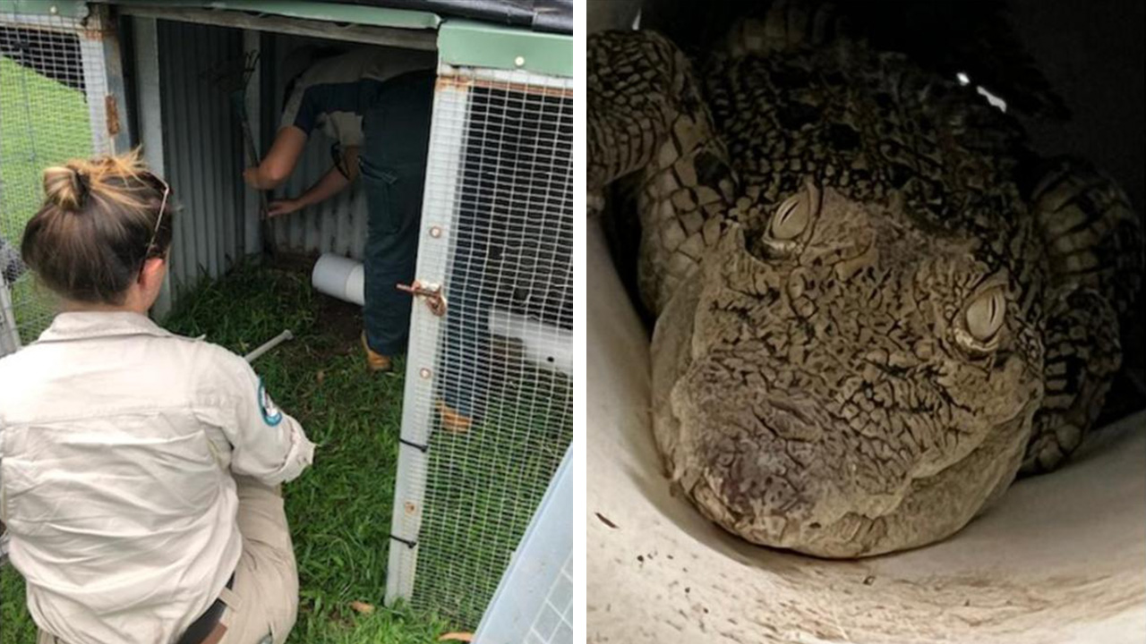 "That is NOT a goanna": Family stumbles upon metre-long croc in their chicken coop