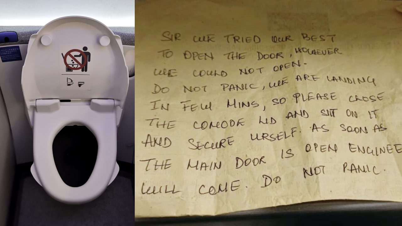 “Do not panic”: Passenger trapped in plane bathroom for entire flight