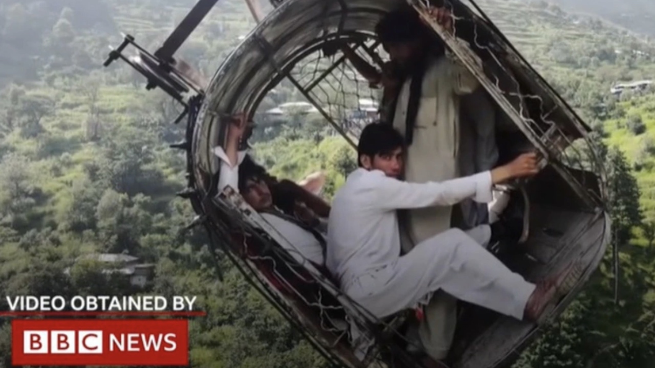 Harrowing footage shows passengers clinging for life in falling cable car