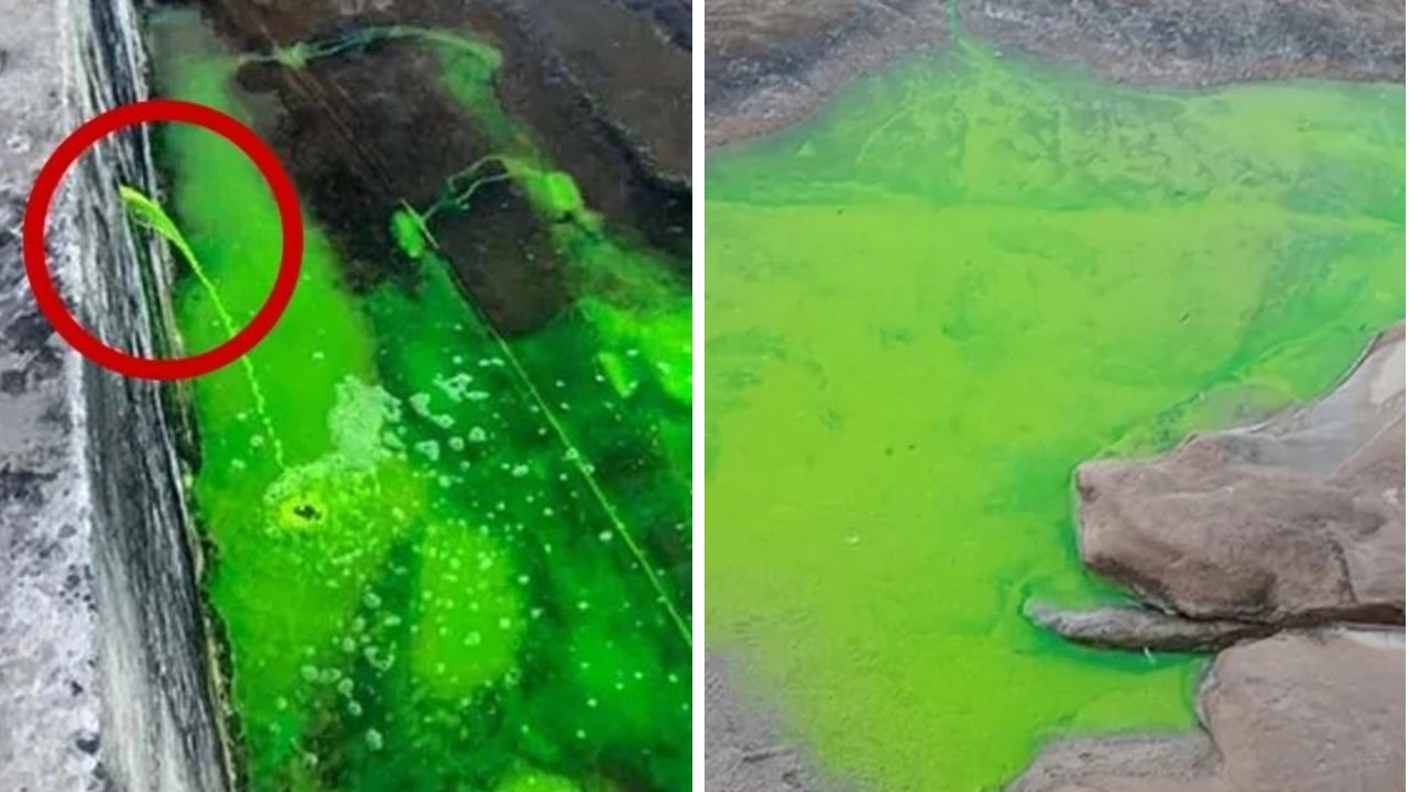 Mysterious liquid turns popular rock pool green