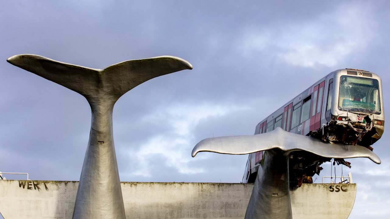 Derailed train saved by giant whale tail